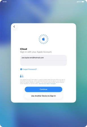When this screen is displayed, your tablet is ready to restore content from an iCloud backup.