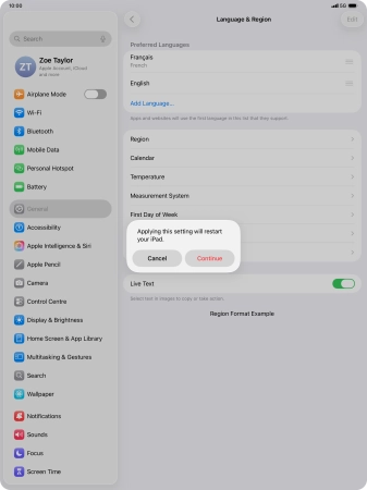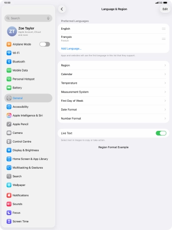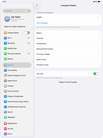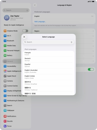 Select language on your Apple iPad Pro (M5) 13-inch iPadOS 26