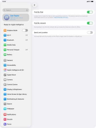 Select settings for Find My iPad on your Apple iPad Pro (M5) 13-inch iPadOS 26