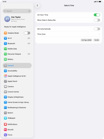 2. Turn on automatic update of time zone, time and date.