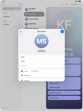 Follow the instructions on the screen to add more information such as an email address and a personal ring tone.