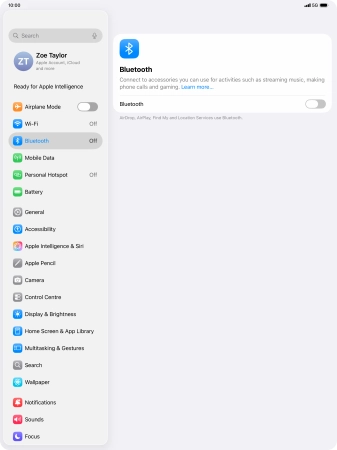 If you turn on Bluetooth, your tablet is visible to all Bluetooth devices.