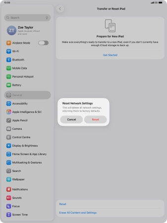 Press Transfer or Reset iPad.