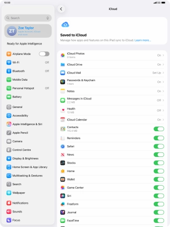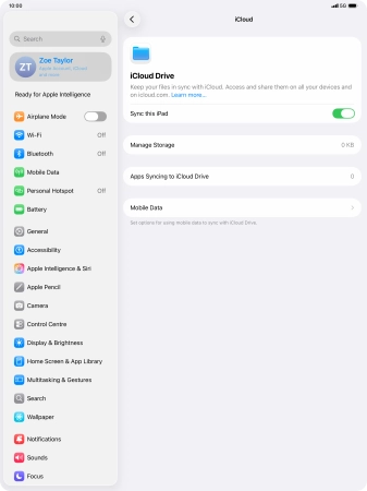 Press the indicator next to "Sync this iPad" to turn the function on or off.