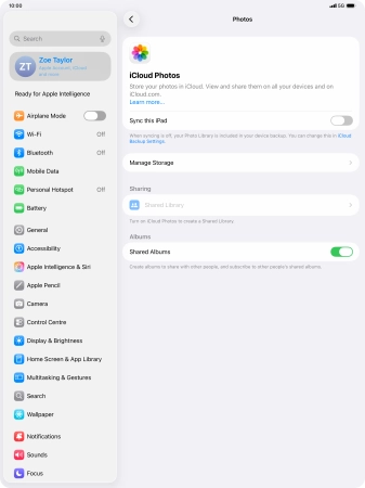If you turn on the function, all new pictures on your tablet are synchronised with other devices via iCloud.