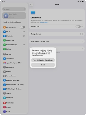 If you turn off the function, press Turn Off Syncing iCloud Drive.