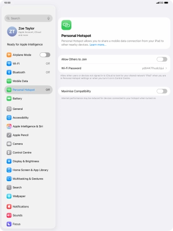 Press Personal Hotspot.