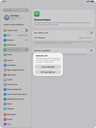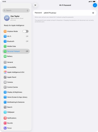 Key in the password for the personal hotspot and establish the connection.