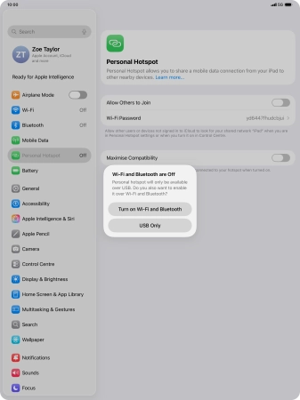 If Wi-Fi is turned on, press Wi-Fi and USB Only.