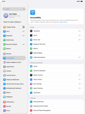 You can select different settings for tablet interaction control, e.g. AssistiveTouch, Voice Control and Eye Tracking making it easier to navigate your tablet.