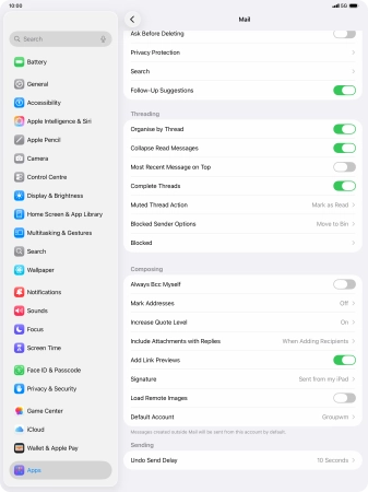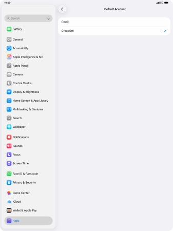 Select default email account on your Apple iPad Pro (M5) 13-inch iPadOS 26
