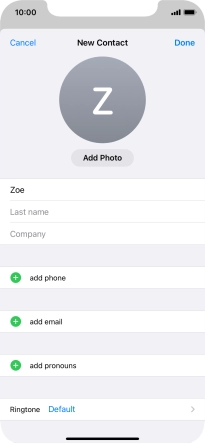 Follow the instructions on the screen to add more information such as an email address and a personal ring tone.