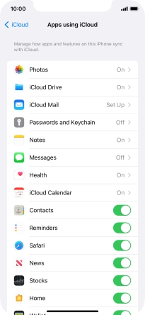 Press the indicators next to the required data types to turn synchronisation of each data type on or off.