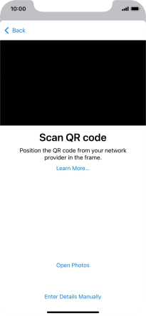 Place the QR code you've received inside the phone camera frame to scan the code. If you’ve deleted your eSIM, you can re-add it using your existing QR code. If you’re having problems, see our FAQ.