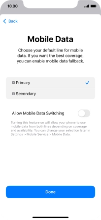 Press the indicator next to "Allow Mobile Data Switching" to turn the function on or off.