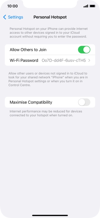 Find the list of available Wi-Fi networks and select the personal hotspot you've just set up.