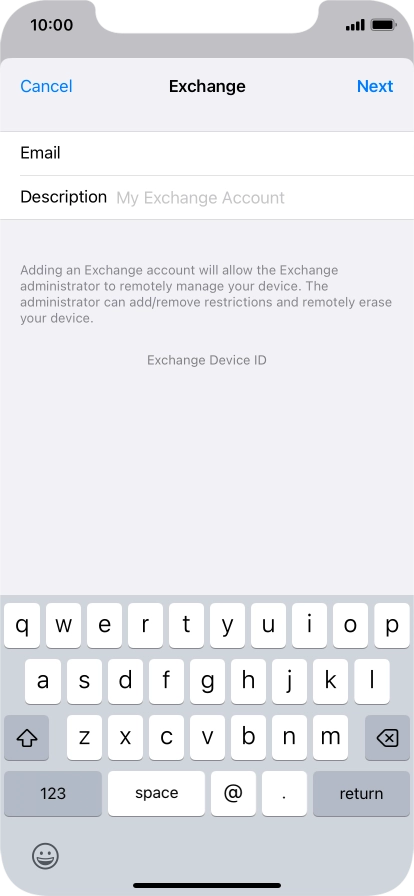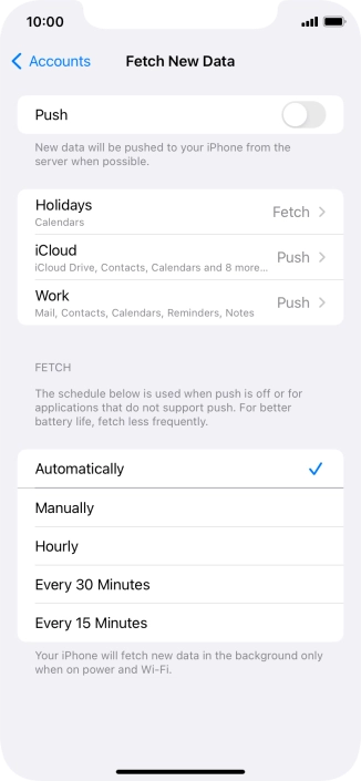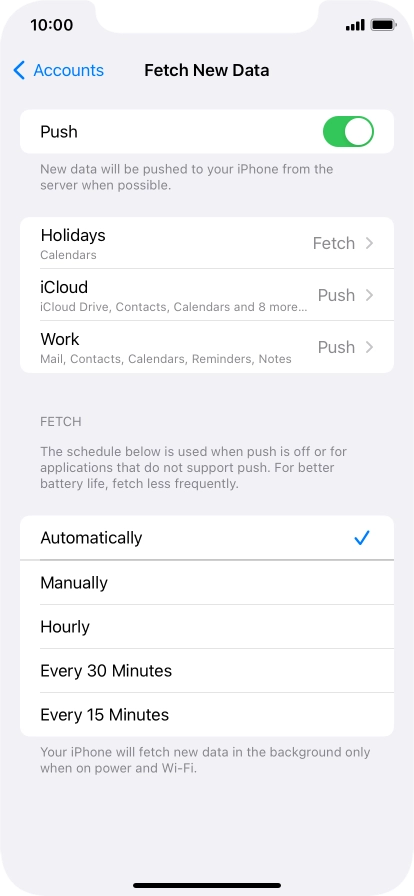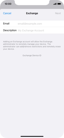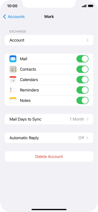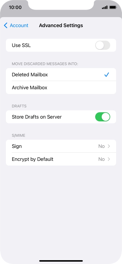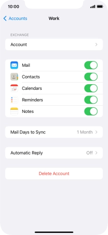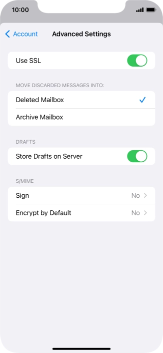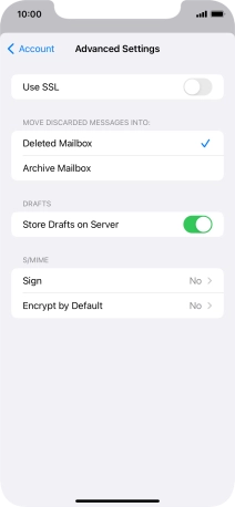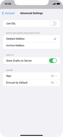 Press the required email account and follow the instructions on the screen to select settings for the specific account.