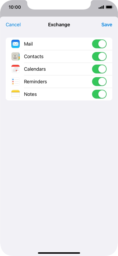 Press the indicators next to the required data types to turn synchronisation of each data type on or off.