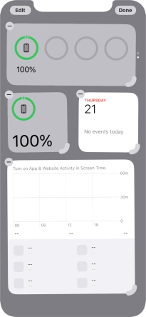 You can use widgets on your phone allowing you to get a quick overview of selected apps. You can choose between different widget sizes, organise widgets in stacks and place them on the home screen.