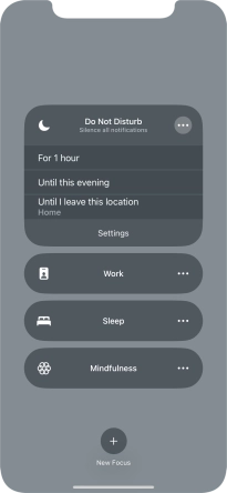 You can set your phone to activate the selected focus mode for a specified period of time, at a specific location or while using a specific app.
