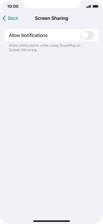 You can turn display of notifications when using SharePlay or Screen Mirroring on or off.
