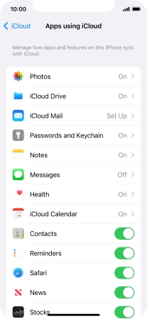 Press the indicators next to the required data types to turn synchronisation of each data type on or off.