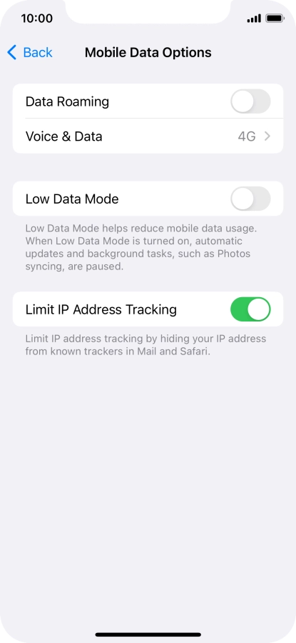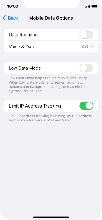 Press the indicator next to "Data Roaming" to turn the function on or off.
