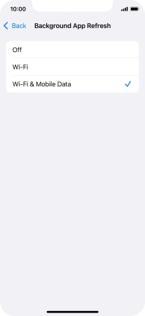 To turn on background refresh of apps using mobile network, press Wi-Fi & Mobile Data.