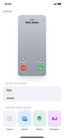 Press Name and follow the instructions on the screen to edit your name on the Contact Poster.