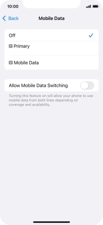 Press the indicator next to "Allow Mobile Data Switching" to turn the function on or off.