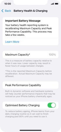 Press the indicator next to "Optimised Battery Charging" to turn the function on or off.