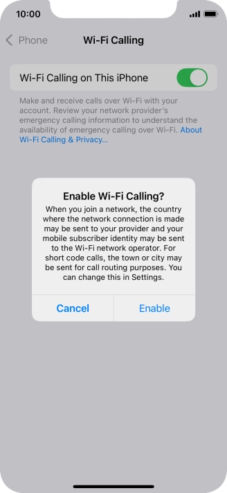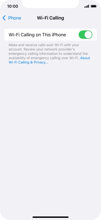 Press the indicator next to "Wi-Fi Calling on This iPhone" to turn the function on or off.