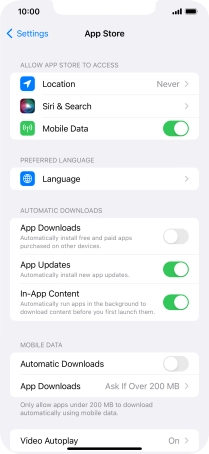 Press the indicator next to "Automatic Downloads" to turn the function on or off.