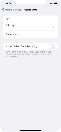 Press the indicator next to "Allow Mobile Data Switching" to turn the function on or off.
