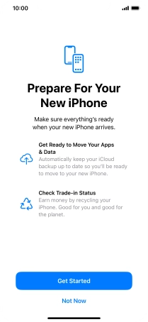 Press Get Started and follow the instructions on the screen to select the required settings and back up the phone memory to iCloud. Once you've received your new iPhone, you'll be able to restore the content of the iCloud backup.