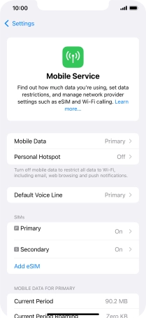 Press the required eSIM below "SIMs".