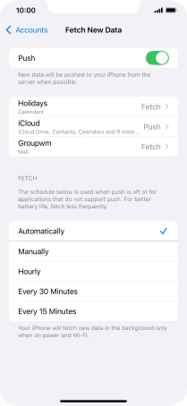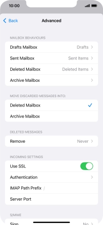 Press the required email account and follow the instructions on the screen to select settings for the specific account.