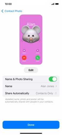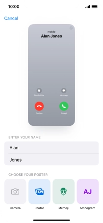 Press Name and follow the instructions on the screen to edit your name on the Contact Poster.