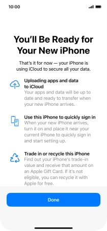 Press Done and follow the instructions on the screen to select the required settings and back up the phone memory to iCloud. Once you've received your new iPhone, you'll be able to restore the content of the iCloud backup.