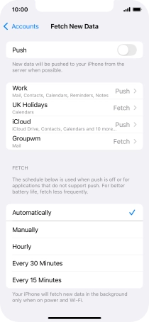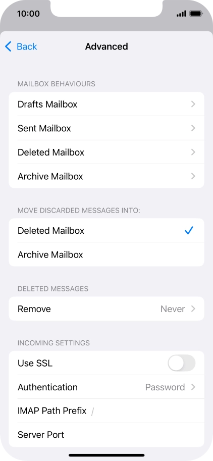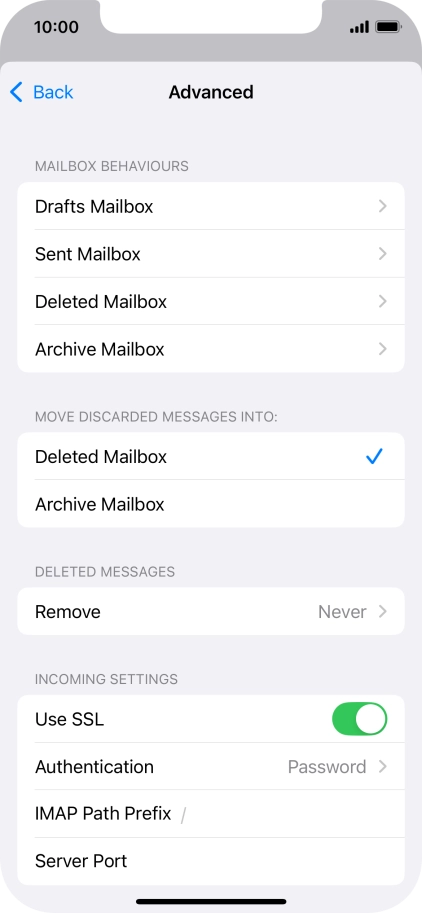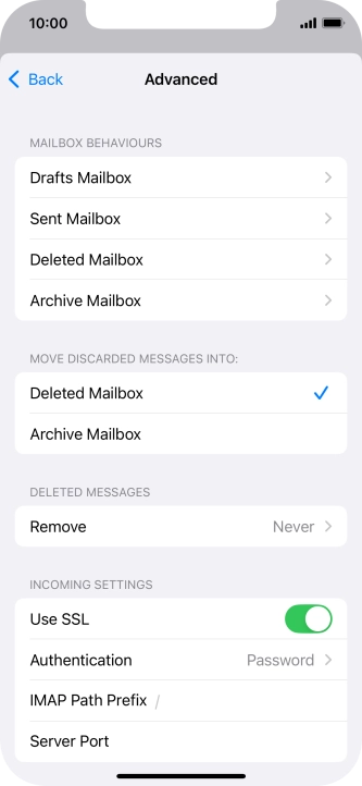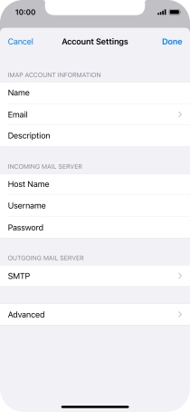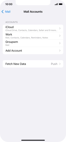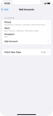 Press the required email account and follow the instructions on the screen to select settings for the specific account.