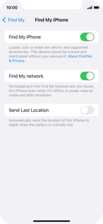 Press the indicator next to "Send Last Location" to turn the function on or off.