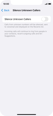 Press the indicator next to "Silence Unknown Callers" to turn the function on or off.