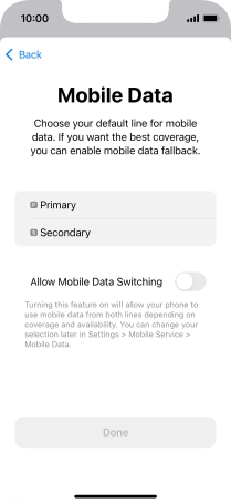 Press the indicator next to "Allow Mobile Data Switching" to turn the function on or off.