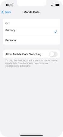 Press the indicator next to "Allow Mobile Data Switching" to turn the function on or off.
