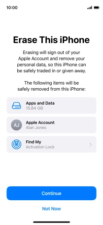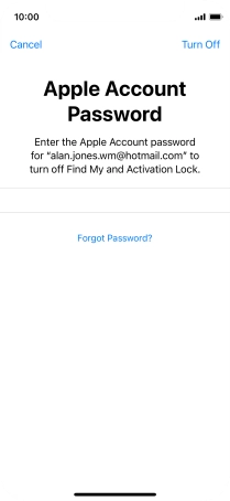 Key in the password for your Apple ID and press Turn Off. Wait a moment while the factory default settings are restored. Follow the instructions on the screen to set up your phone and prepare it for use.