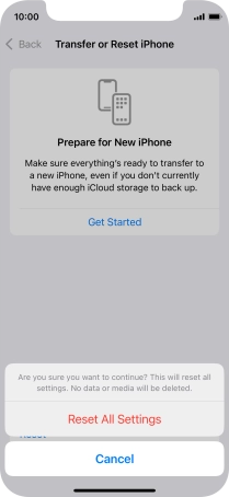Press Reset All Settings. Wait a moment while the factory default settings are restored. Follow the instructions on the screen to set up your phone and prepare it for use.