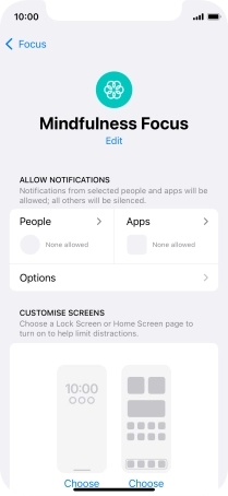 Press Apps and follow the instructions on the screen to select which apps you would like to receive notifications from when the selected focus mode is active.