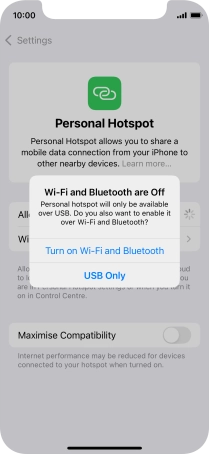 If Wi-Fi is turned on, press Wi-Fi and USB Only.