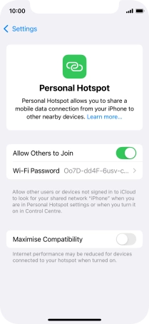 Press Personal Hotspot.