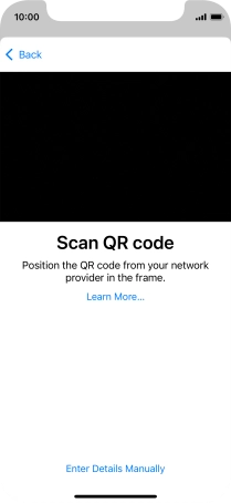 Place the QR code you've received inside the phone camera frame to scan the code. If you’ve deleted your eSIM, you can re-add it using your existing QR code. If you’re having problems, see our FAQ.